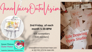 The 2nd Friday of every month Inner Voices Outer Vision in partnership with The St Lucie Cultural Alliance gallery hosts a Life Drawing Open Studio event. For $35 ($30 for members of the Alliance, or the Ft Pierce Art Club) 5 participants have the opportunity to brush up on their figure drawing skills. Some say an artist needs this type of practice like a musician needs to practice scales. Contact us at 1voice@innervoicesoutervision for details.